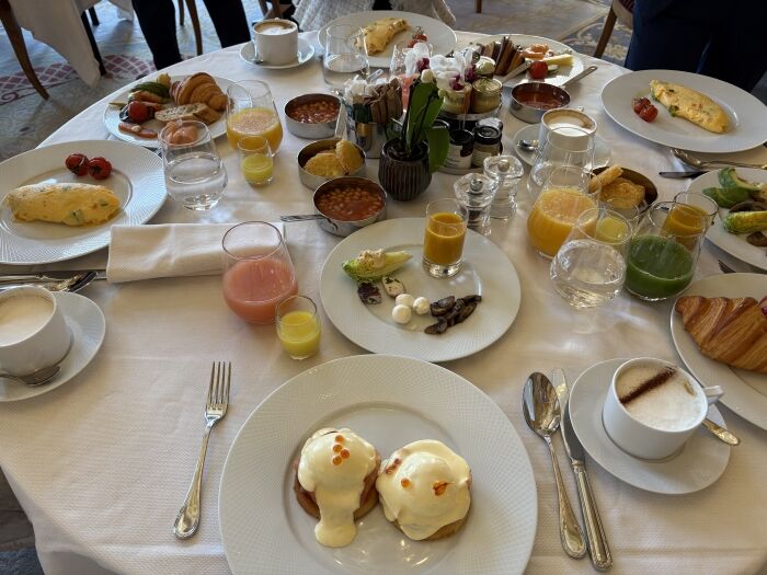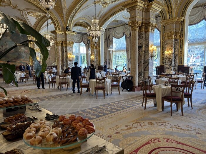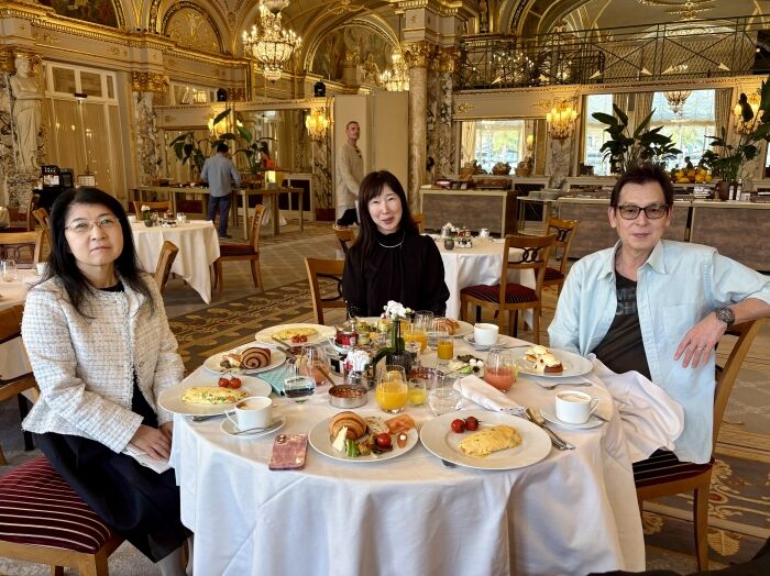 朝食会場はその昔グレースケリーが結婚式の時に使われていらした広間ということで金の装飾が施されているそうです。ゴージャスでとても素敵でした。