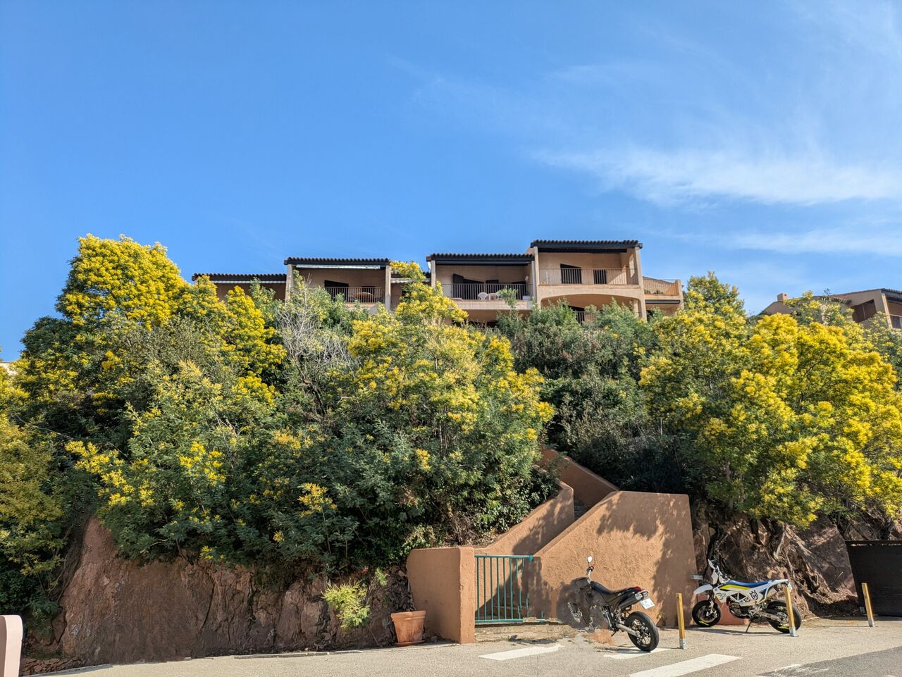 ミモザ祭りが少し前に開催されていたそうでこの町にもミモザの花がたくさん咲いていました。